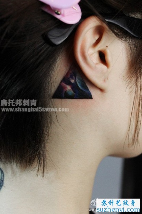 耳部的星空三角形纹身_脖子纹身图案大全_纹身图吧