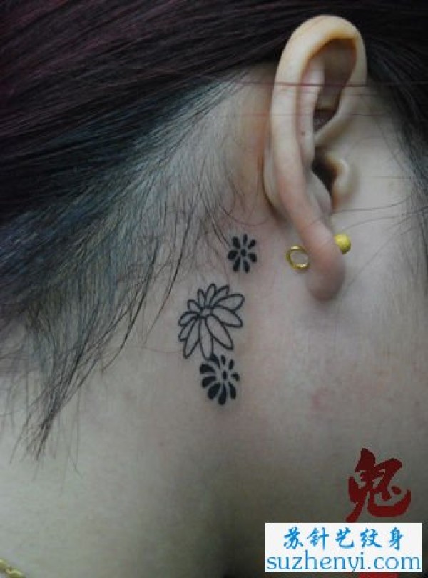 耳部简单的邹菊纹身_脖子纹身图案大全_纹身图吧