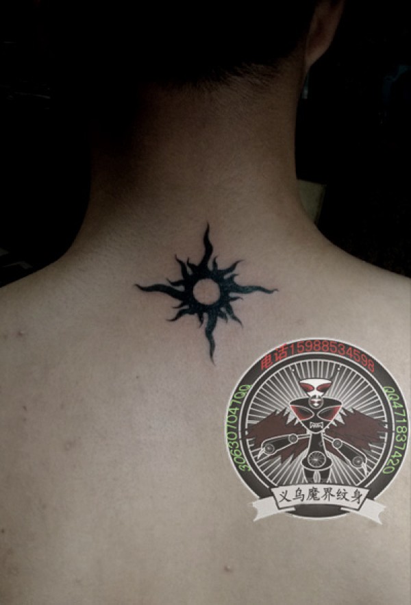 后脖子图腾纹身 太阳刺青_脖子纹身图案大全_纹身图吧