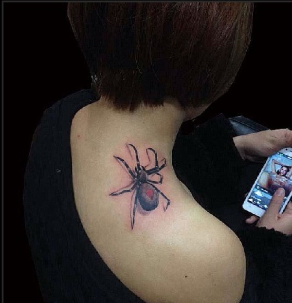 脖子后小蜘蛛纹身_脖子纹身图案大全_纹身图吧