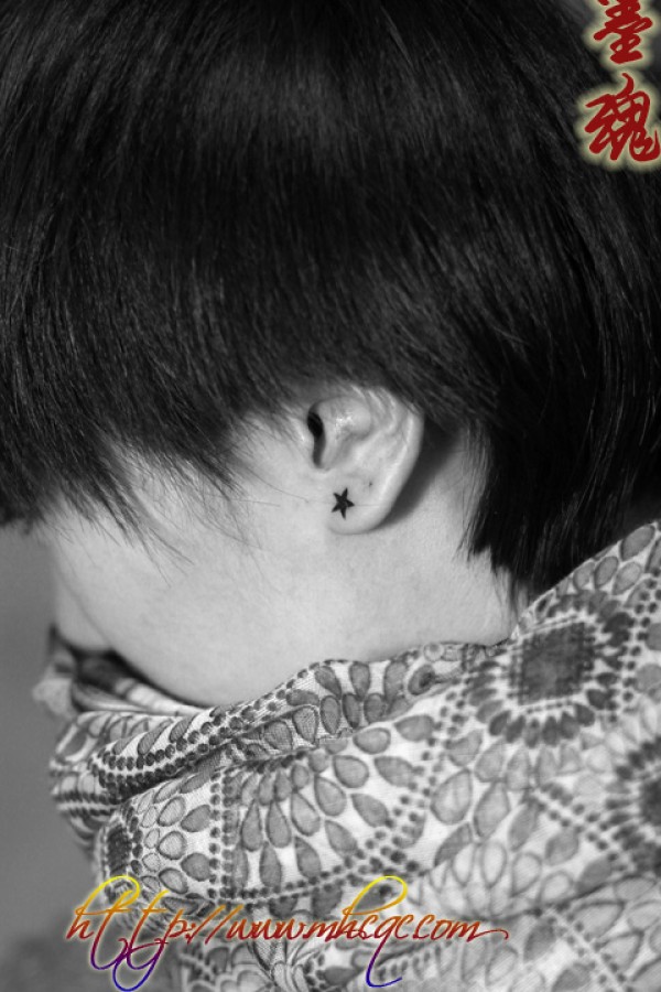 耳朵上的五角星纹身_脖子纹身图案大全_纹身图吧