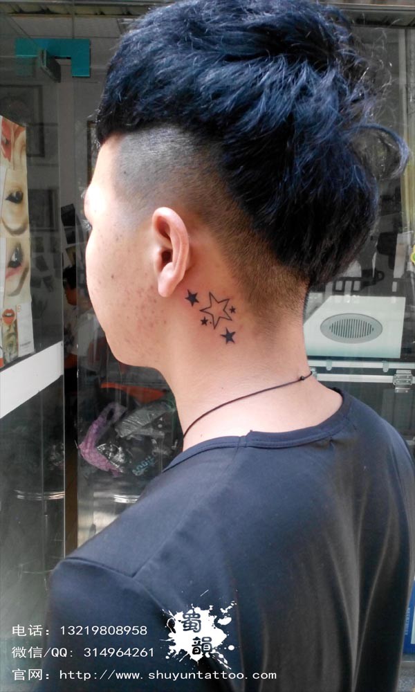 攀枝花纹身耳后五角星纹身,攀枝花蜀韵刺青_脖子纹身图案大全_纹身图吧