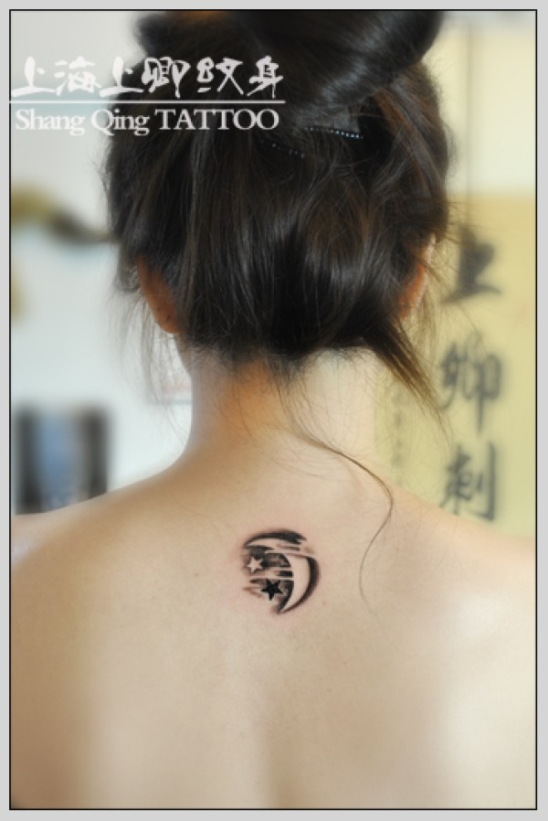 星月小图+耳后小音符纹身_脖子纹身图案大全_纹身图吧