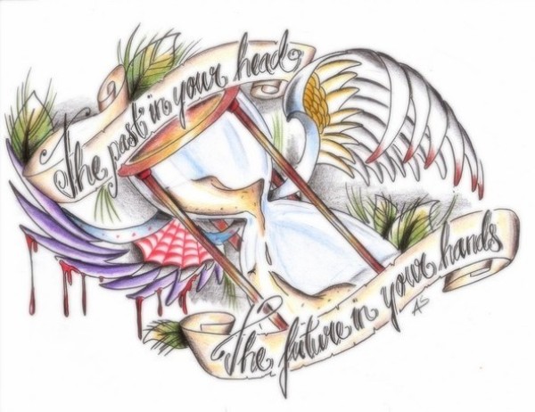 长着翅膀的迷人沙漏_翅膀纹身图案大全_纹身图吧