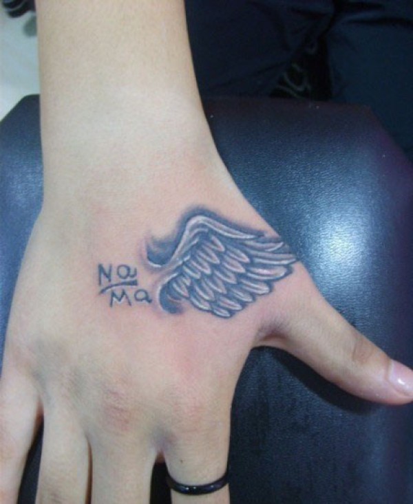 女生手背半边翅膀纹身图案图片_翅膀纹身图案大全_纹身图吧
