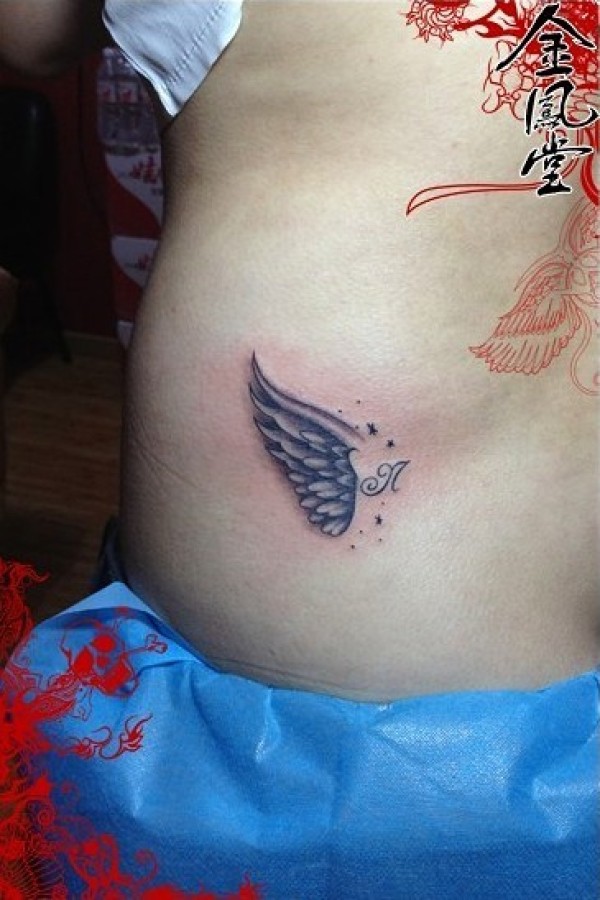 腰部的文字翅膀纹身图案_翅膀纹身图案大全_纹身图吧