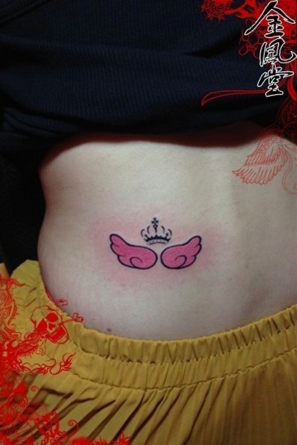 腰部的文字翅膀纹身图案_翅膀纹身图案大全_纹身图吧