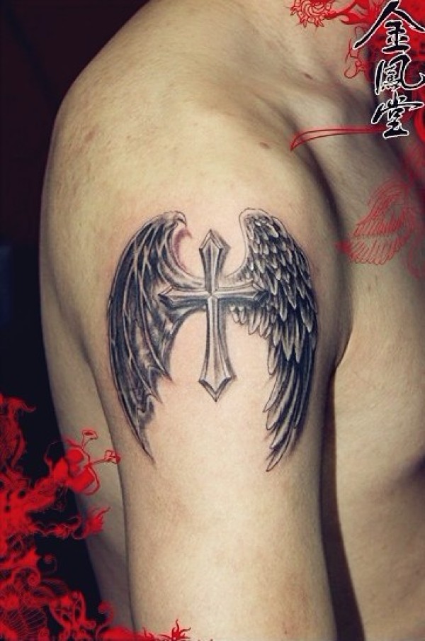 十字架翅膀纹身_翅膀纹身图案大全_纹身图吧