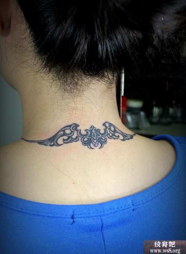 后颈幸福图腾翅膀纹身图案_翅膀纹身图案大全_纹身图吧