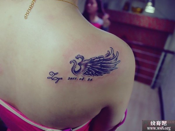 性感肩部单翅膀唯美纹身图案_翅膀纹身图案大全_纹身图吧