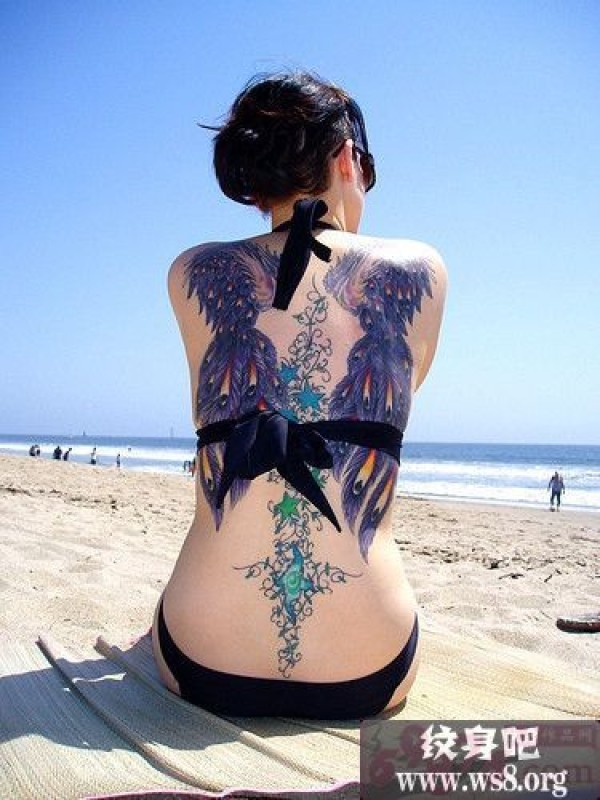 比基尼美女背部翅膀图案_翅膀纹身图案大全_纹身图吧