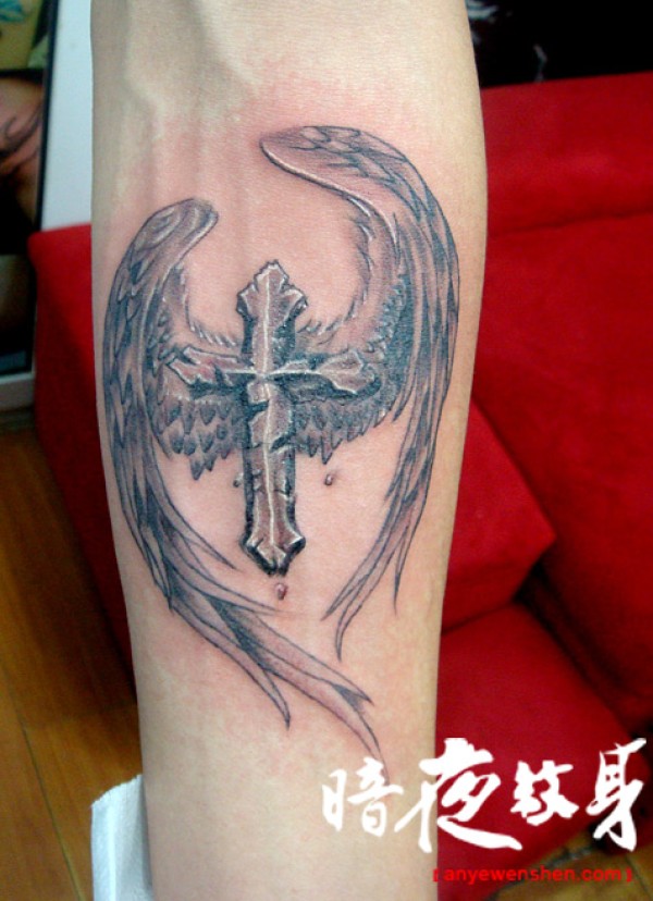 纹身之、十字架翅膀纹身_翅膀纹身图案大全_纹身图吧