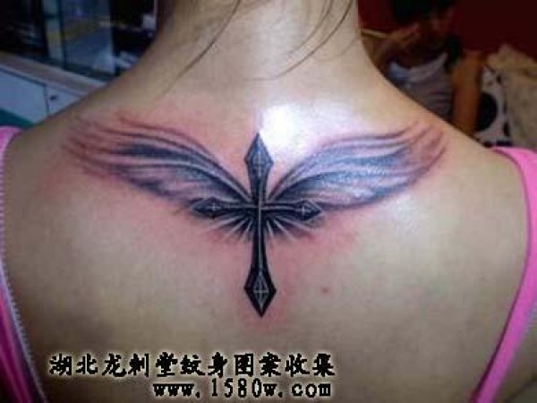 十字架翅膀纹身背部纹身_翅膀纹身图案大全_纹身图吧