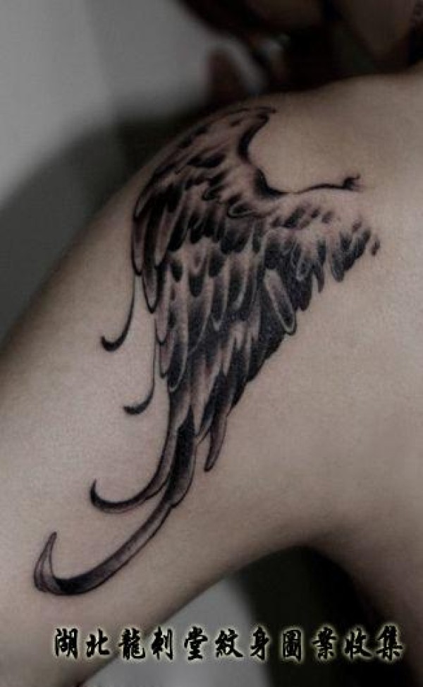 时尚的肩部翅膀纹身图案图片_翅膀纹身图案大全_纹身图吧