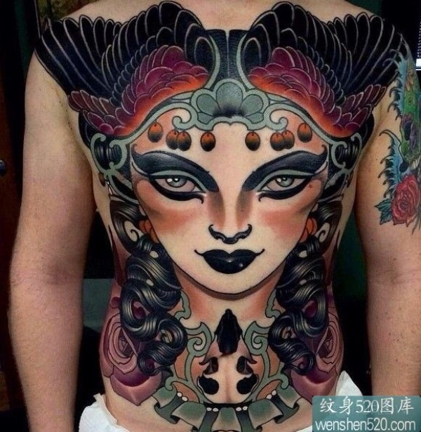 满背彩色女妖精翅膀纹身图案_翅膀纹身图案大全_纹身图吧