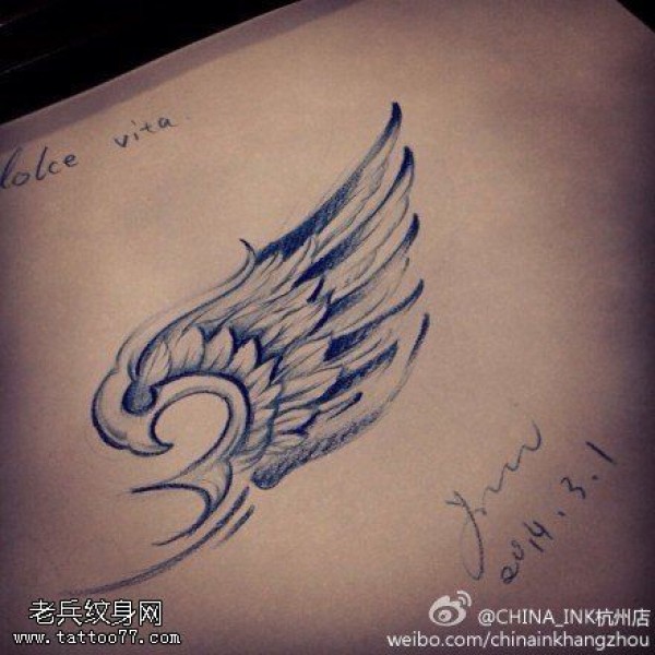 一款翅膀纹身线稿图案_翅膀纹身图案大全_纹身图吧
