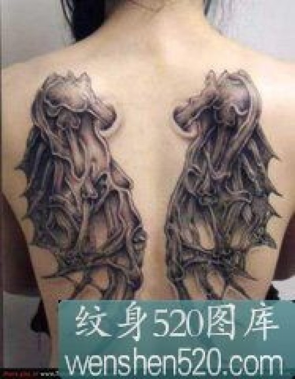 女孩满背恶魔翅膀纹身图案_翅膀纹身图案大全_纹身图吧