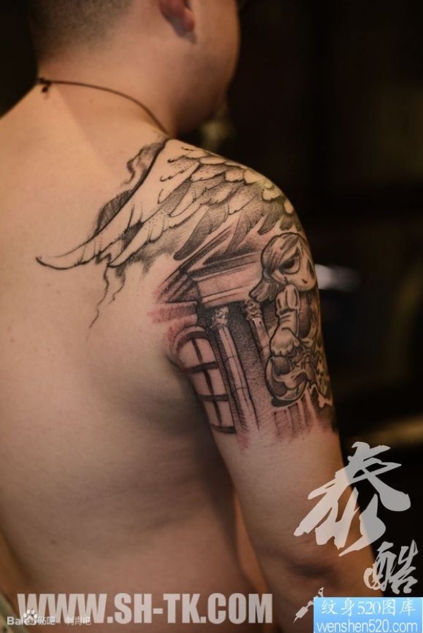 时尚的肩部翅膀纹身图案图片_翅膀纹身图案大全_纹身图吧