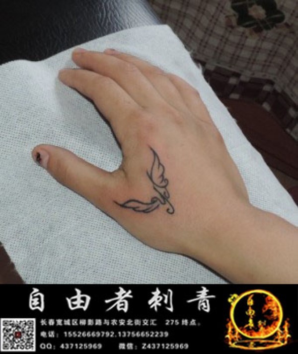 手背虎口处的翅膀小图案纹身线条翅膀图案纹身_翅膀纹身图案大全_纹身图吧