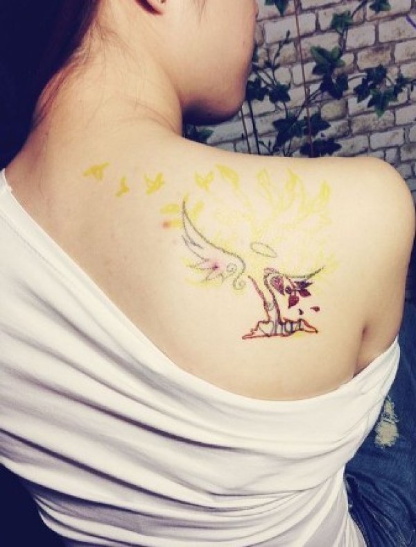 时尚的肩部翅膀纹身图案图片_翅膀纹身图案大全_纹身图吧