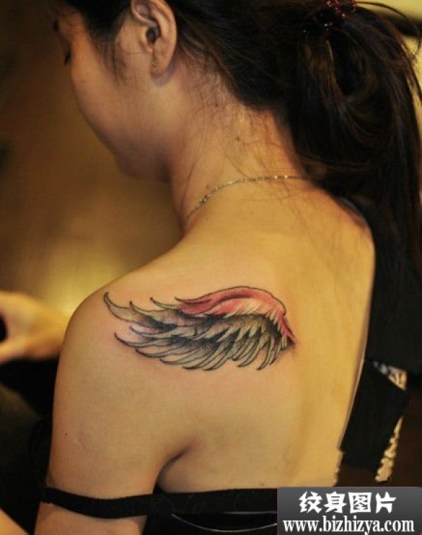 唯美单翅膀肩部纹身图案图片_翅膀纹身图案大全_纹身图吧