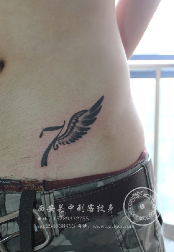 腰部的文字翅膀纹身图案_翅膀纹身图案大全_纹身图吧