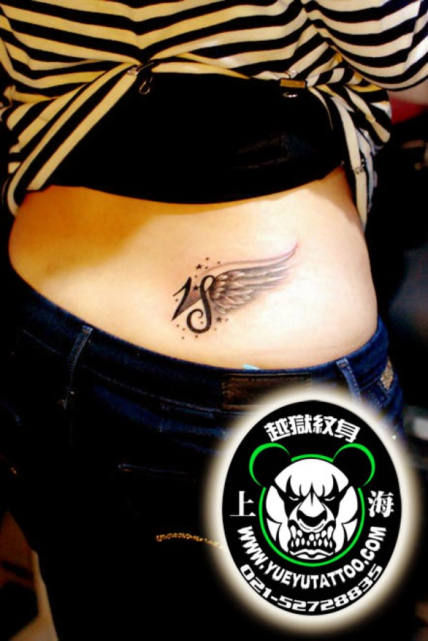 腰部的文字翅膀纹身图案_翅膀纹身图案大全_纹身图吧