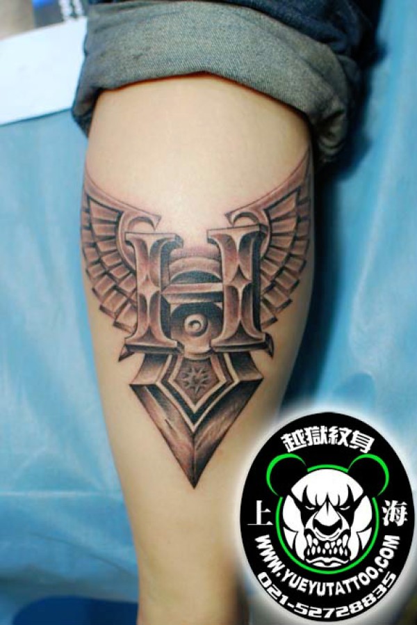 腿部立体翅膀纹身图案上海越狱纹身店作品_翅膀纹身图案大全_纹身图吧