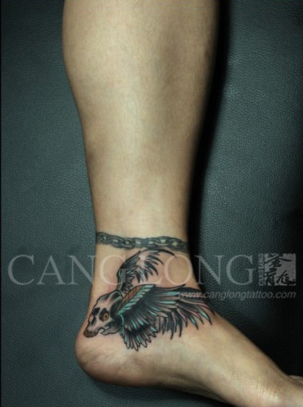 脚踝处经典时尚的翅膀纹身图案_翅膀纹身图案大全_纹身图吧