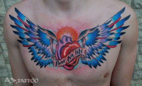 男生前胸很帅的翅膀心脏纹身图案_翅膀纹身图案大全_纹身图吧