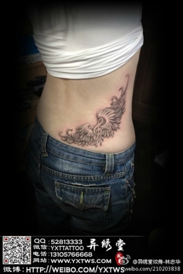 腰部的文字翅膀纹身图案_翅膀纹身图案大全_纹身图吧