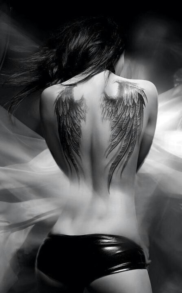 分享美女一款满背翅膀纹身图案_翅膀纹身图案大全_纹身图吧