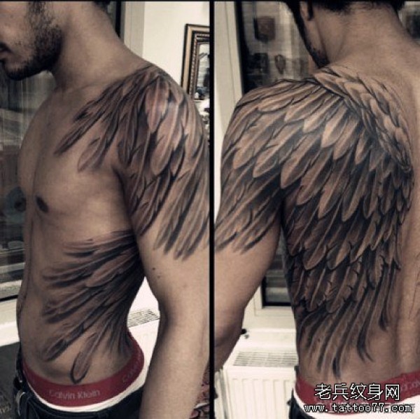 专业纹身后背翅膀纹身图案图片_翅膀纹身图案大全_纹身图吧