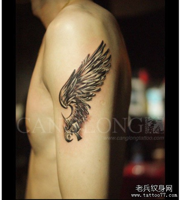 时尚的肩部翅膀纹身图案图片_翅膀纹身图案大全_纹身图吧
