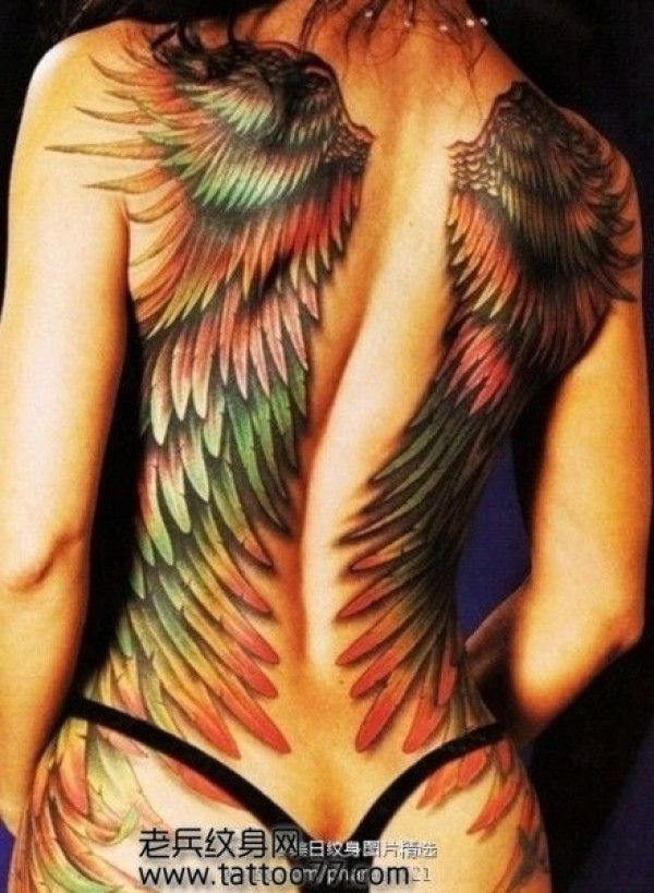 美女满背超帅的翅膀纹身图案_翅膀纹身图案大全_纹身图吧