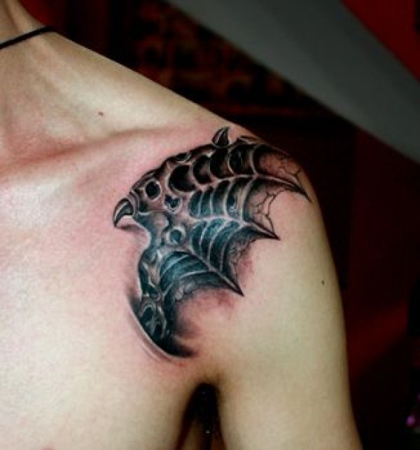 肩膀处精美的恶魔翅膀纹身图案_翅膀纹身图案大全_纹身图吧