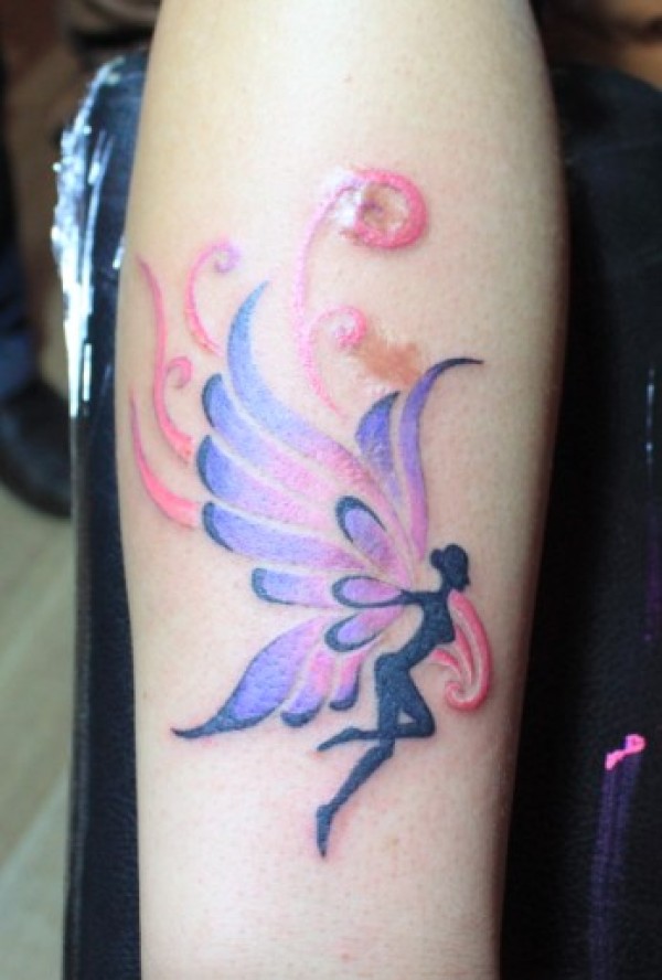 女孩子腿部精美的彩色精灵翅膀纹身图案_翅膀纹身图案大全_纹身图吧