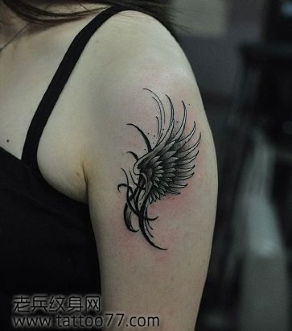 时尚的肩部翅膀纹身图案图片_翅膀纹身图案大全_纹身图吧