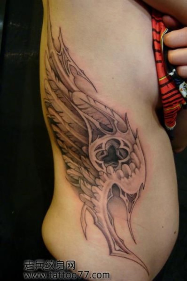女孩子侧腰翅膀纹身图案_翅膀纹身图案大全_纹身图吧