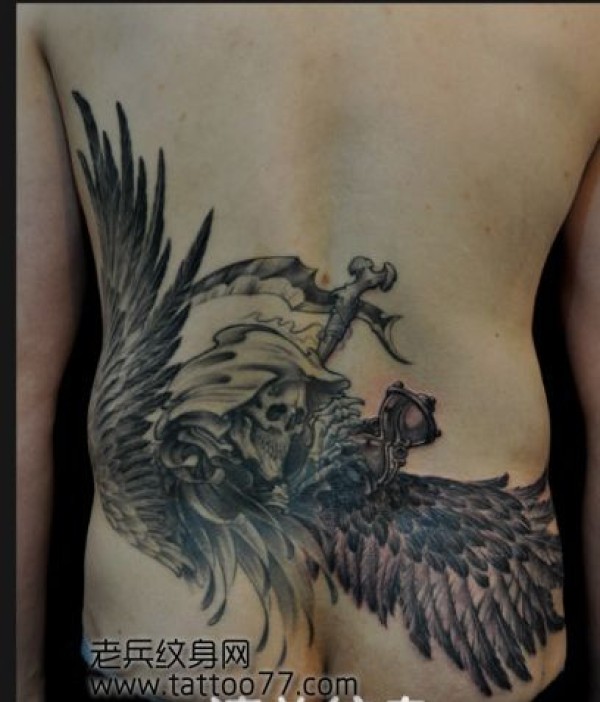 腰部霸气酷气的死神翅膀纹身图案_翅膀纹身图案大全_纹身图吧