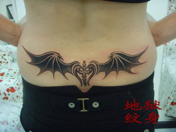 武汉最好的纹身店美女后腰翅膀纹身图案图片_翅膀纹身图案大全_纹身图吧