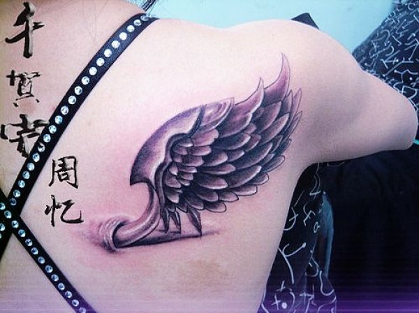 湖北咸宁文身店美女后肩背翅膀文身图案图片_翅膀纹身图案大全_纹身图吧