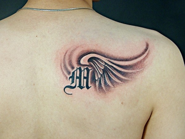 后背翅膀文字纹身图案图片大全_翅膀纹身图案大全_纹身图吧