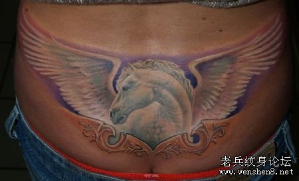 一款腰部彩色独角兽翅膀纹身图案纹身图片_翅膀纹身图案大全_纹身图吧