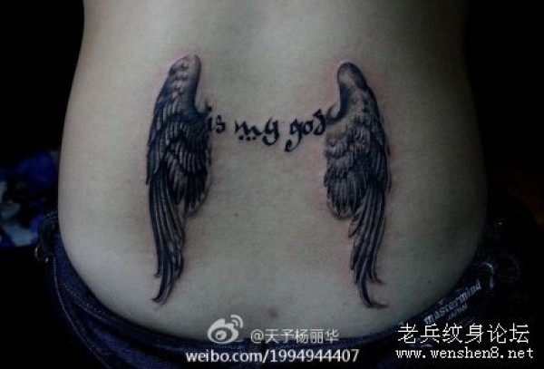 腰部的文字翅膀纹身图案_翅膀纹身图案大全_纹身图吧
