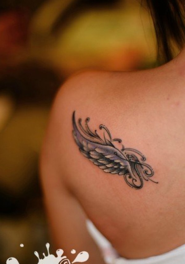 时尚的肩部翅膀纹身图案图片_翅膀纹身图案大全_纹身图吧