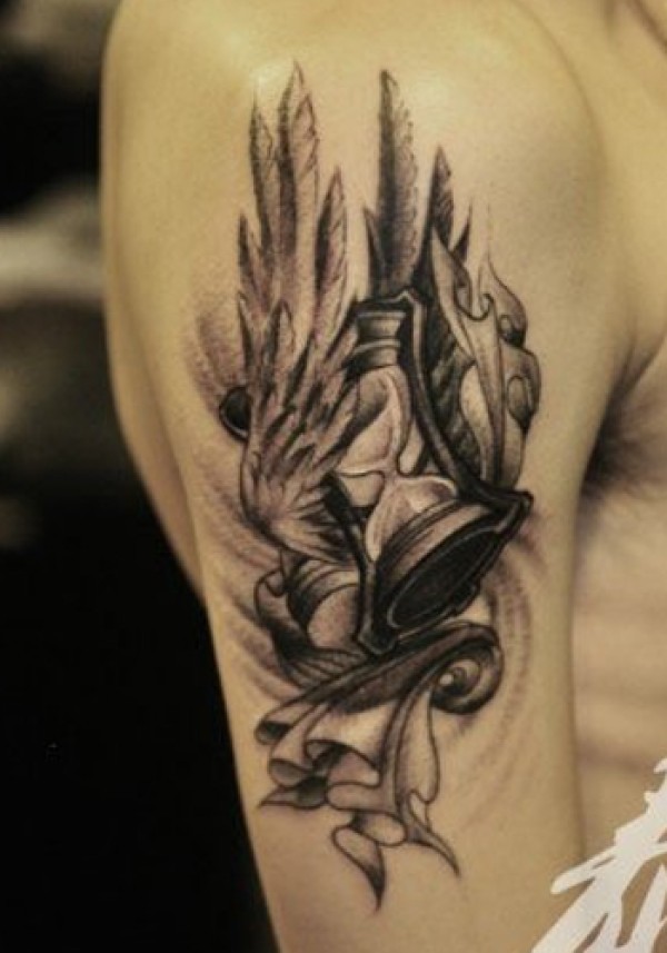 沙漏翅膀纹身图案_翅膀纹身图案大全_纹身图吧