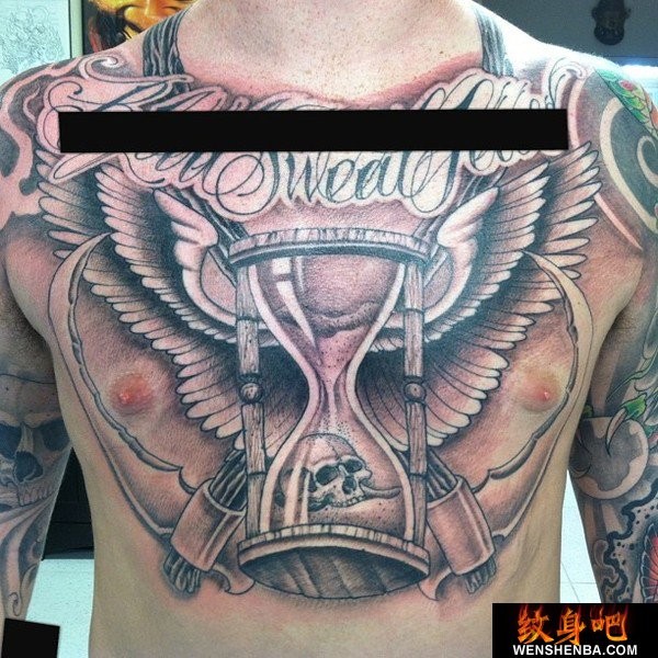 胸前翅膀沙漏纹身_翅膀纹身图案大全_纹身图吧