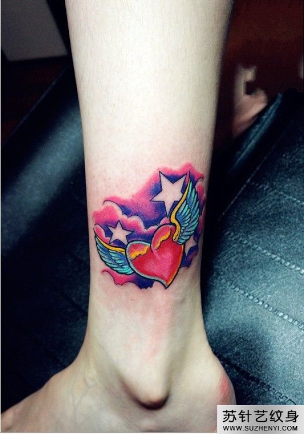 脚踝翅膀红心纹身_翅膀纹身图案大全_纹身图吧