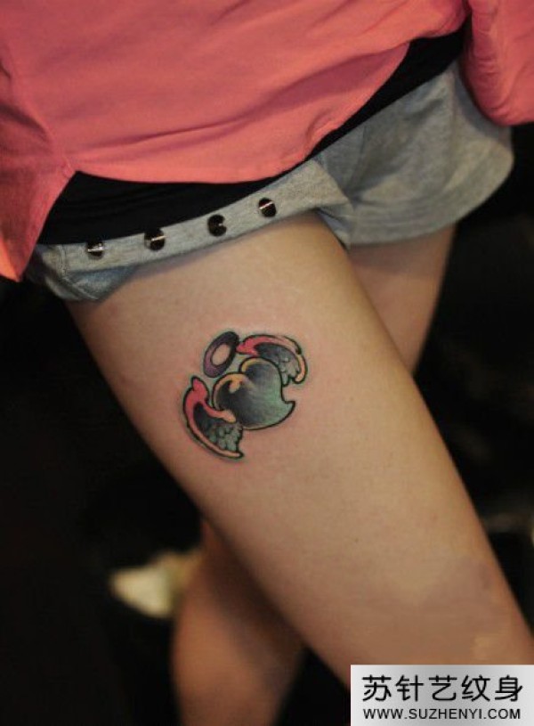 翅膀红心大腿纹身_翅膀纹身图案大全_纹身图吧